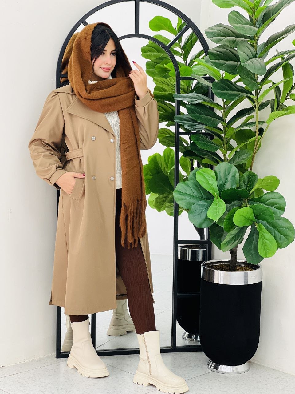 با بوت کوتاه یا کتونی سفید، با شال پشمی یا روسری نازک، بهراحتی میتونی استایلهای مختلف پاییزی بسازی. رنگبندی متنوع از مشکی تا شتری و سورمهای هم باعث میشه با هر سلیقهای ستش کنی.