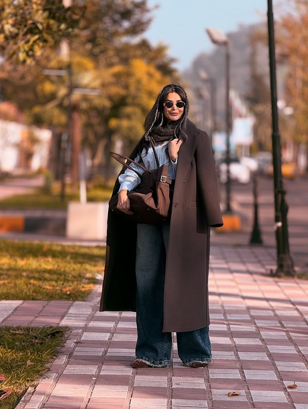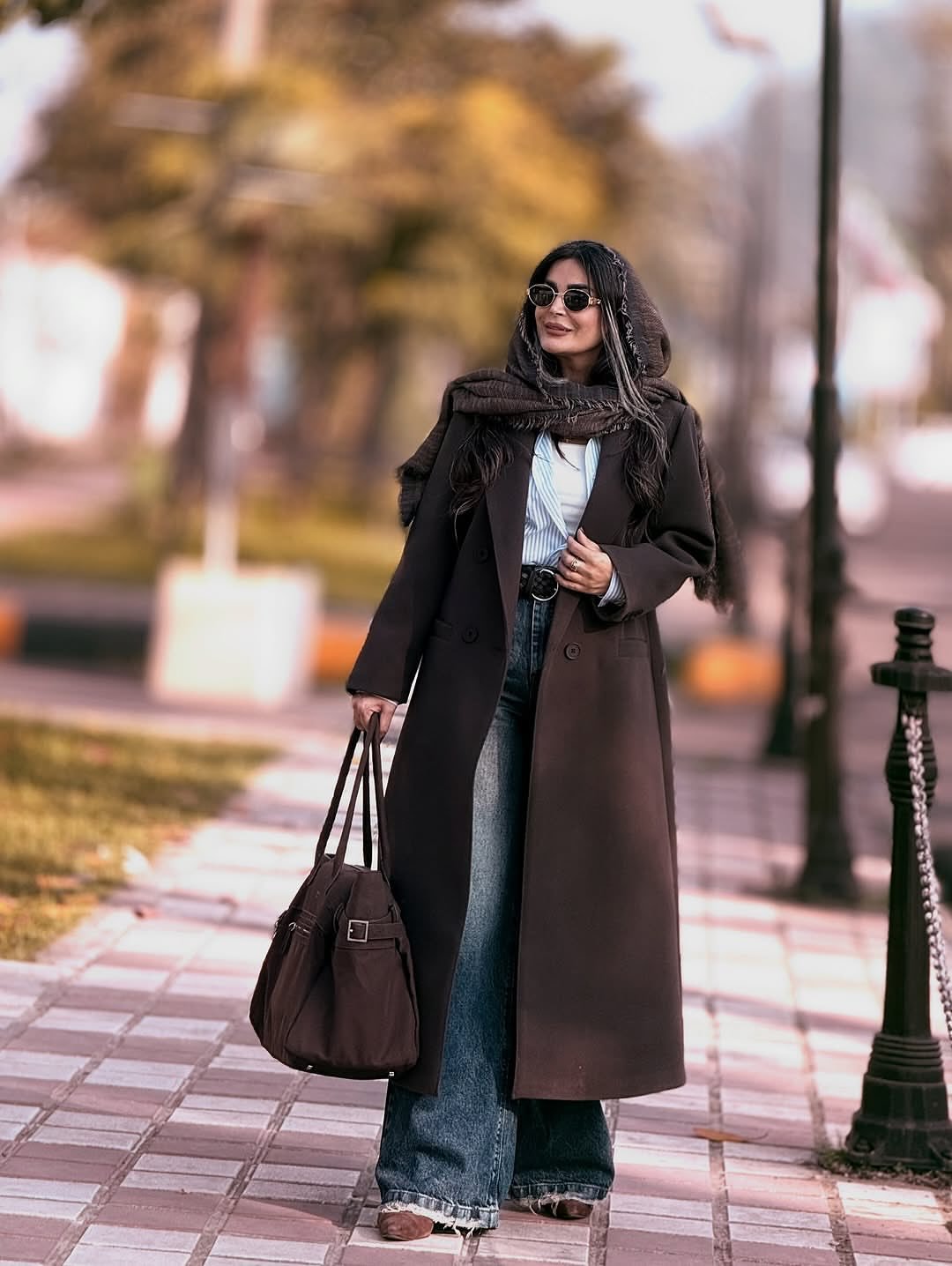 استایل پاییزه با پالتو بلند نگین