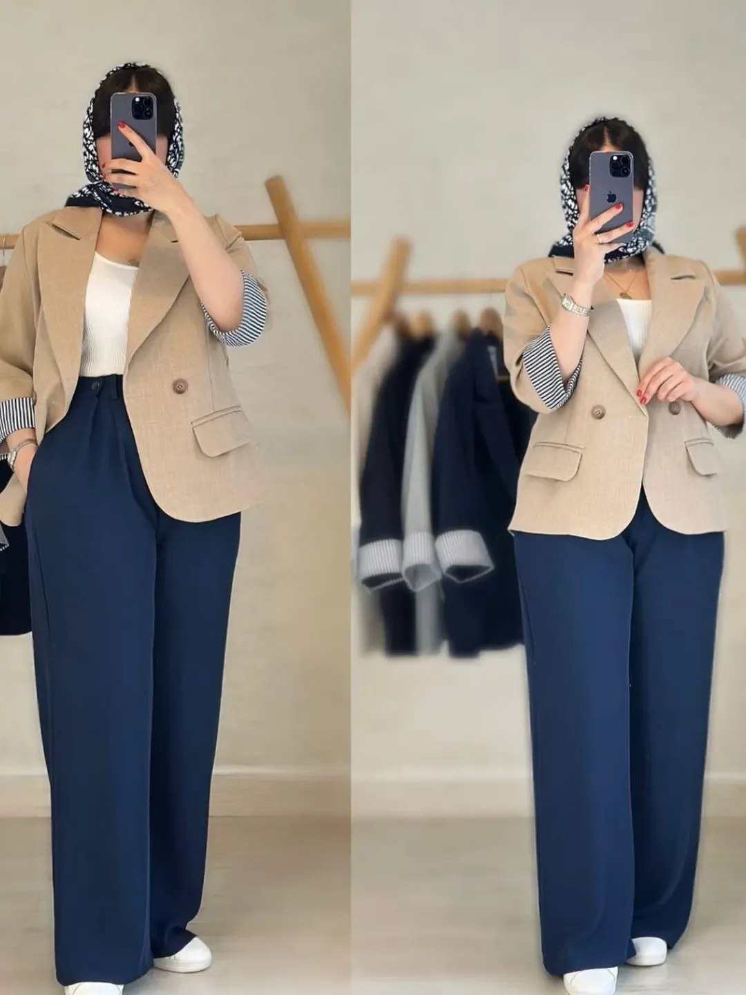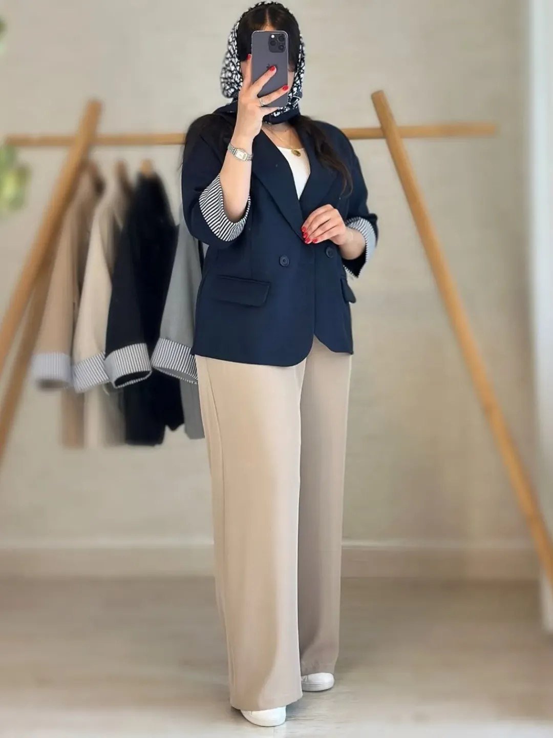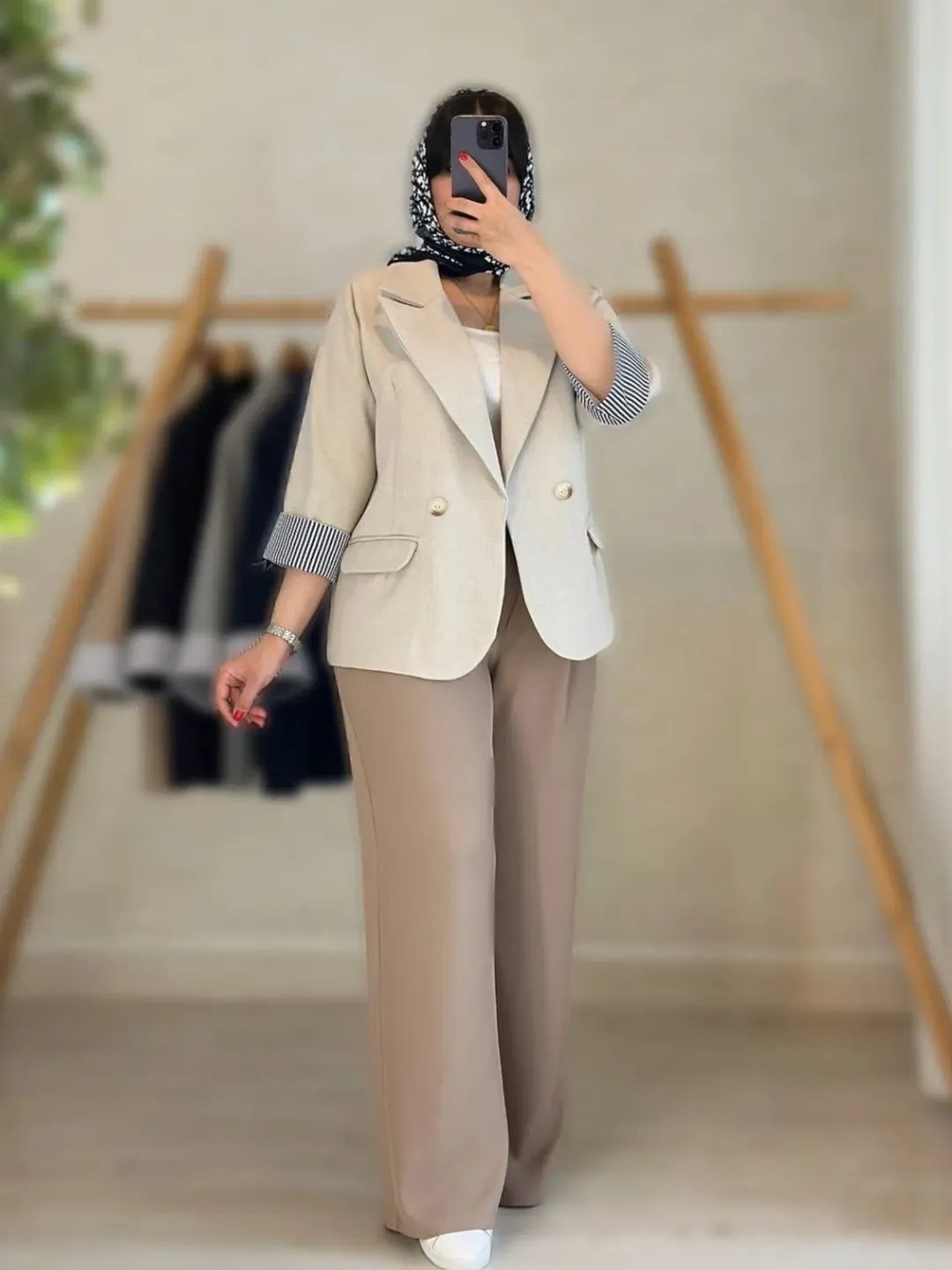 رنگبندی این کار هماهنگ و جذابه و با هر سبک آرایش و اکسسوری ترکیب شیکی میسازه. میتونی با یه تاپ یا شومیز روشن زیرش ستش کنی و با کفش پاشنهدار یا حتی کتانی، استایل خاص خودتو بسازی. 🌷