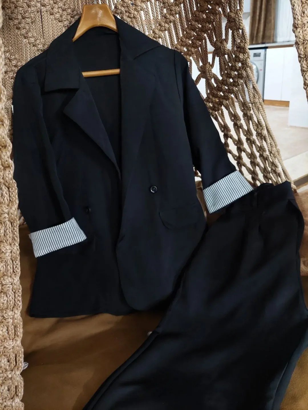 کت شلوار جانر بهصورت مزوندوز طراحی شده و دوختش طوریه که چه برای مراسم رسمی و چه برای محیطهای کاری و مهمانیهای خاص، کاملاً مناسب باشه. طراحی کت با یقههای کلاسیک و دو دکمهای، حالوهوای لوکس و حرفهای به استایل میده و ترکیب اون با شلوار فیت و قد بلند، ظاهری کشیده و خوشفرم ایجاد میکنه 💫