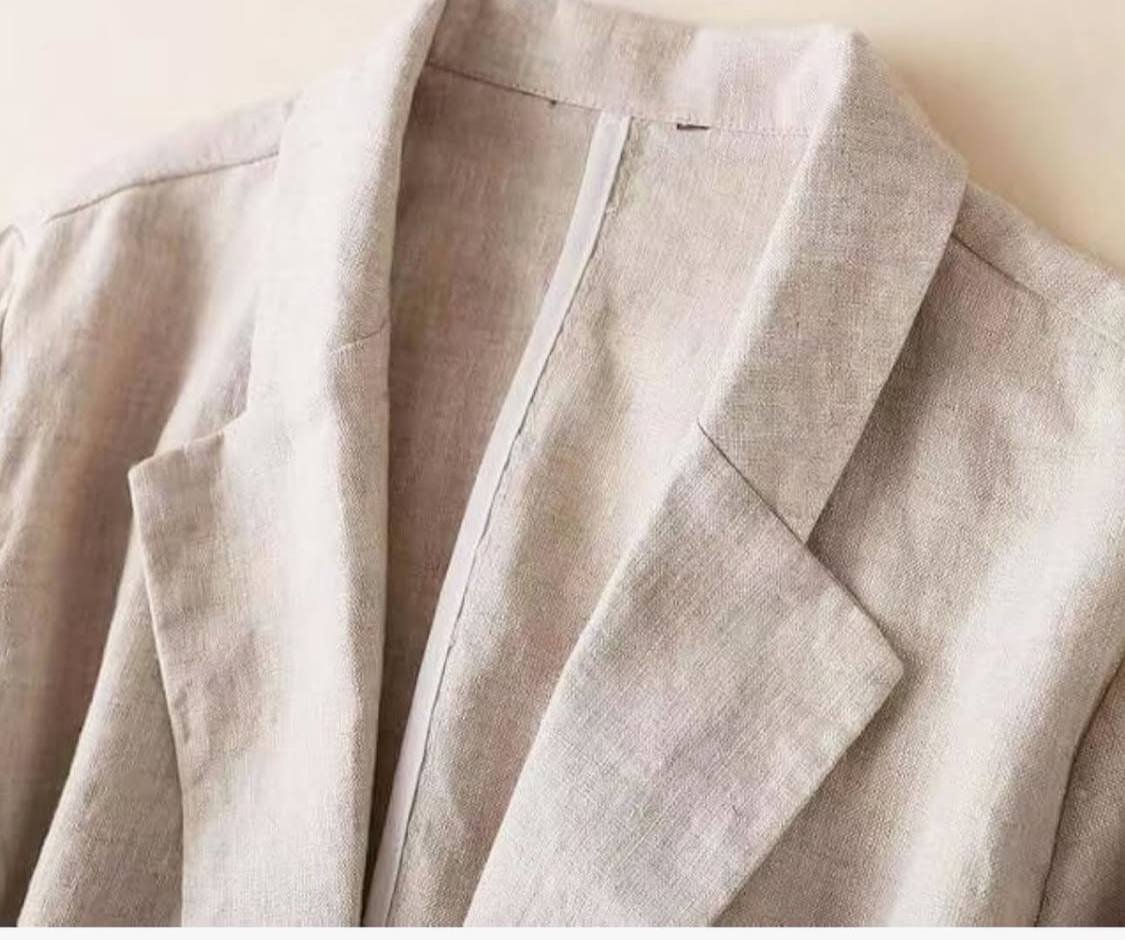 ✨ جنس پارچه: استفاده از لینن شانتون درجهیک باعث شده این کت هم سبک باشه، هم خنک، هم با ایستایی مناسب. دیگه از گرما و چروک شدن لباس نترس!