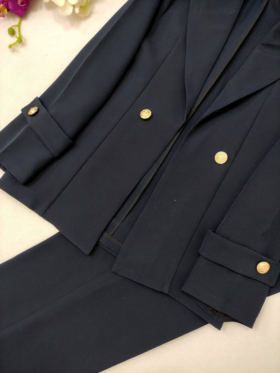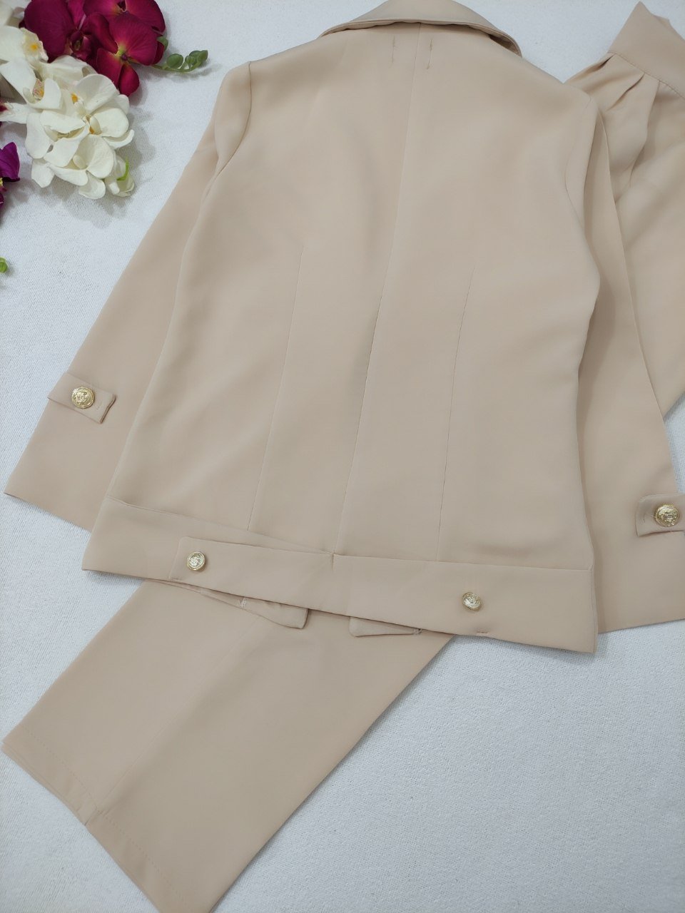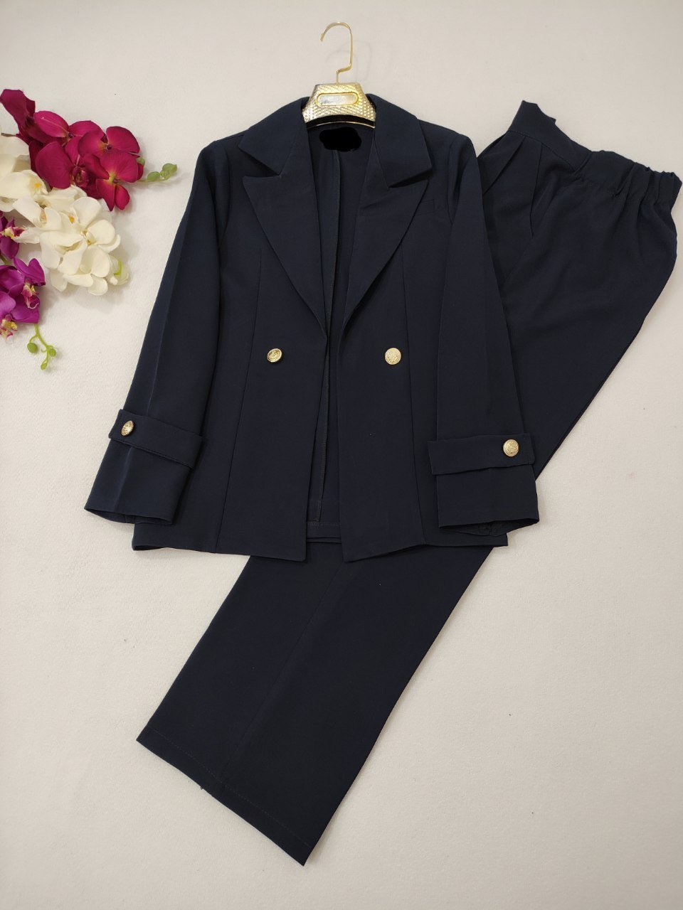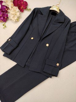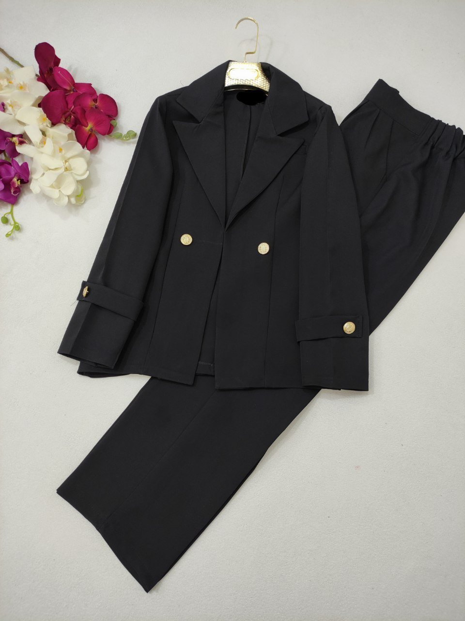 📌 این کت و شلوار را میتوانید با شومیز مشکی رعنا، اکسسوریهای مینیمال طلایی و کفشهای پاشنهدار کلاسیک ست کنید تا جلوهای شیک و جسورانه به استایل خود ببخشید.